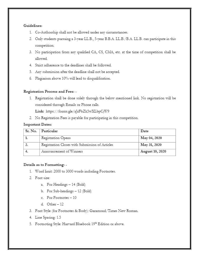 - Only students pursuing a 3-year LLB, 5-year BBA LLB/BA LLB can participate in this competition.
