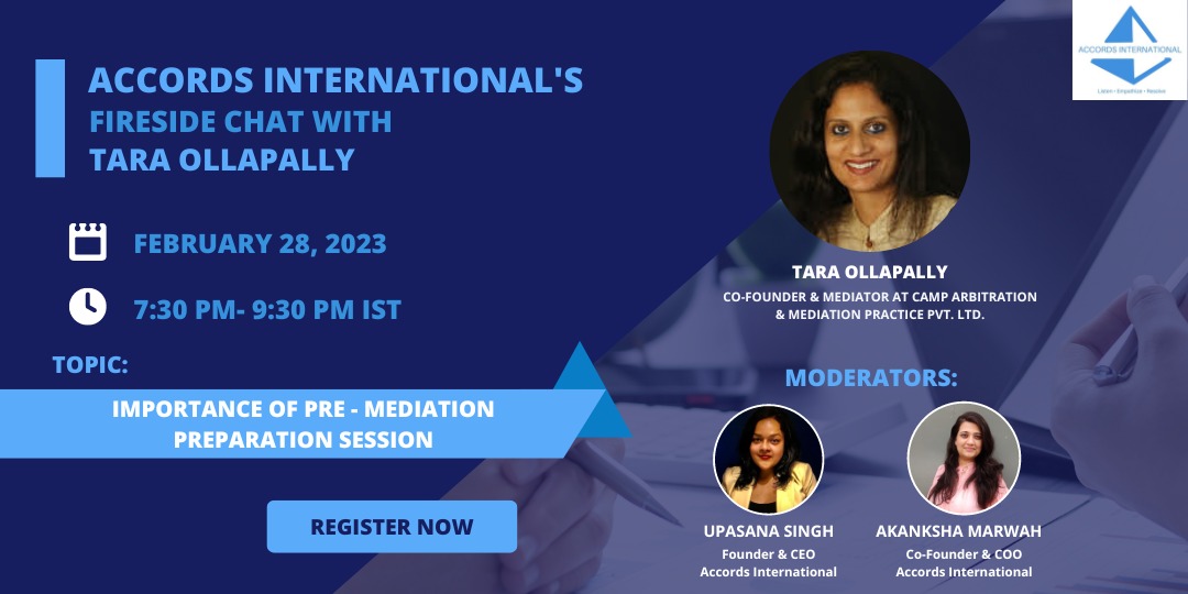 A Fireside Chat On “Importance of Pre-Mediation Preparation Sessions” Organized By Accords International [28th February 2023]: Register Now!