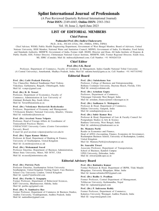 Call For Papers For “Splint International Journal Of Professionals” (A Multi-Disciplinary), ISSN 2349 6045 (P), 3583 3561 (O) Vol-10, Issue-4 (October- December 2023): Submit By 15th November 2023