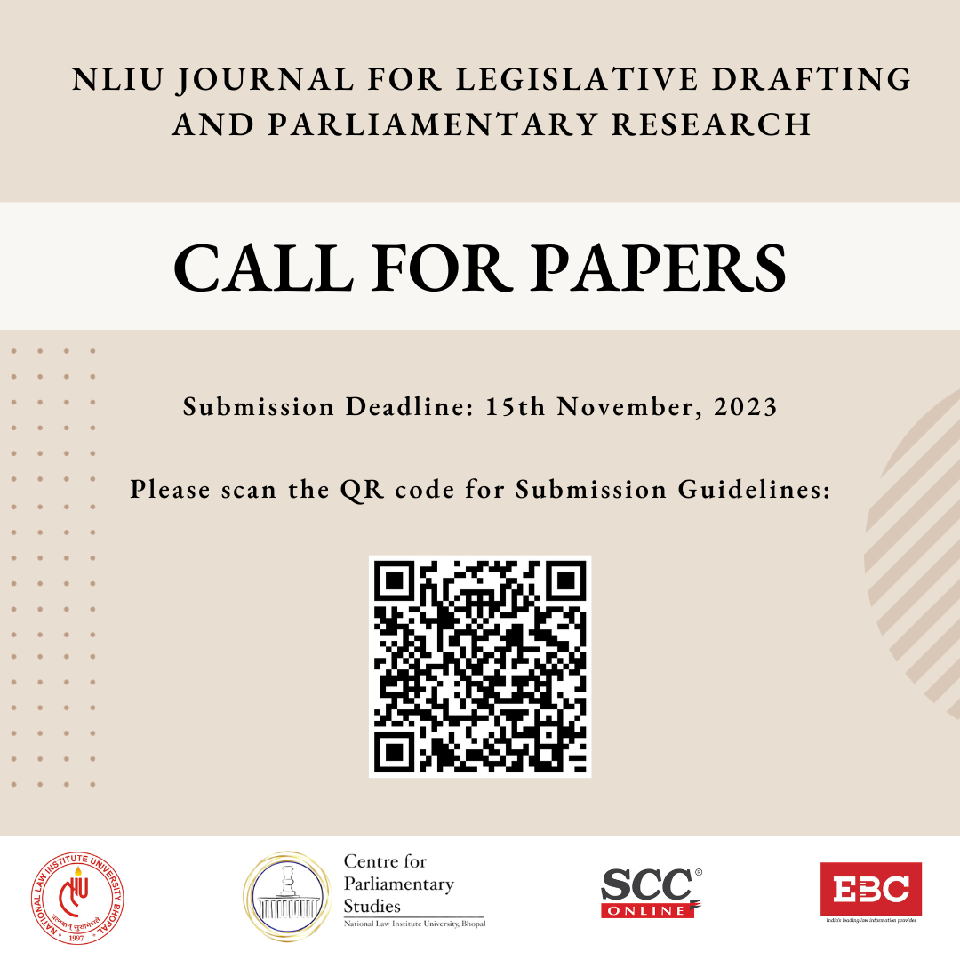 Call For Papers For Volume II Of The Journal for Legislative Drafting And Parliamentary Research (JLDPR) | Centre For Parliamentary Studies, National Law Institute University, Bhopal (CPS): Submit By 15th November 2023