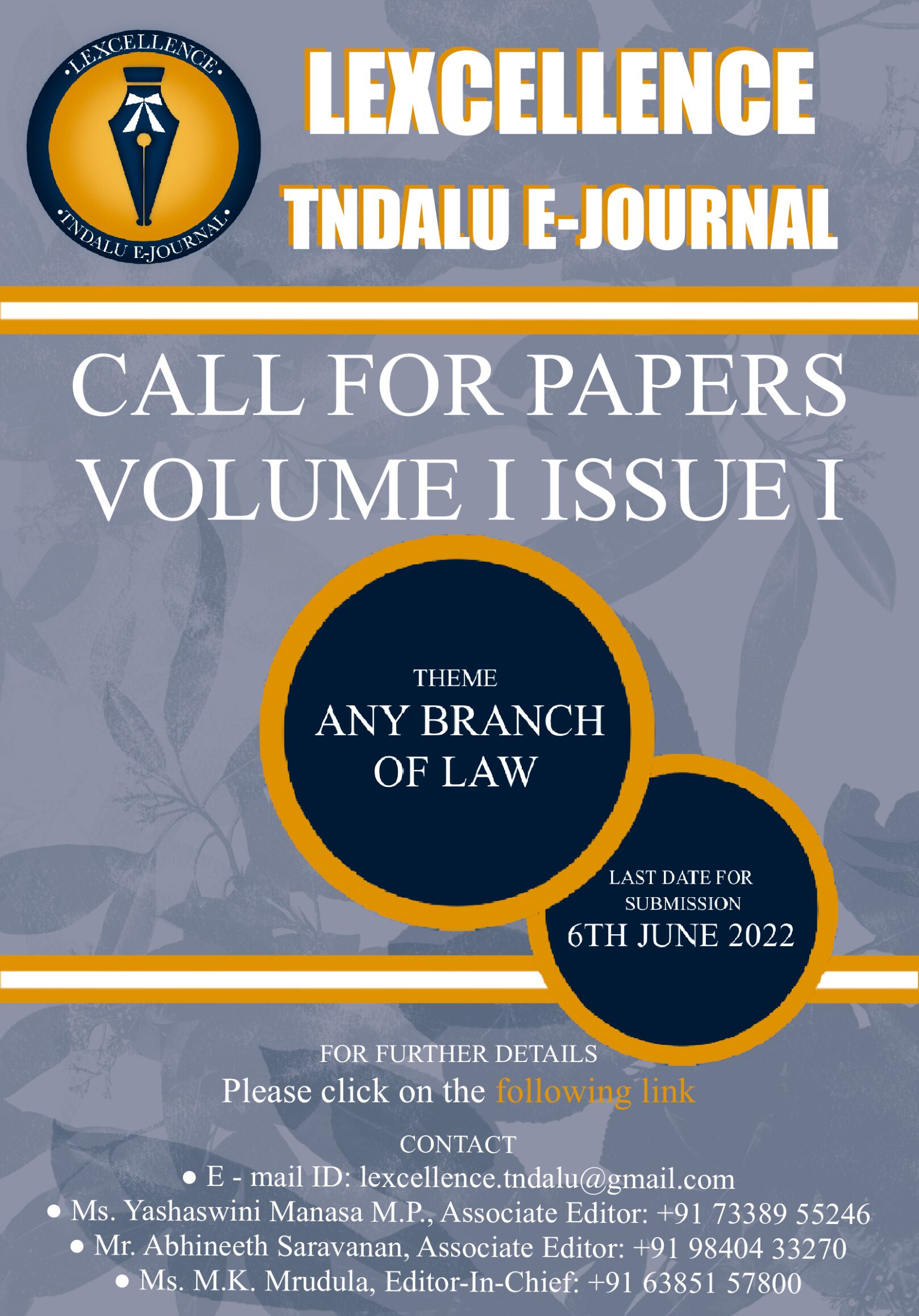 The journal is an endeavor to seek scholarly research papers from the experts, academicians, and students on contemporary legal issues to enhance awareness, generate a cross current of ideas on emerging matters and provide solutions to pertinent legal issues.