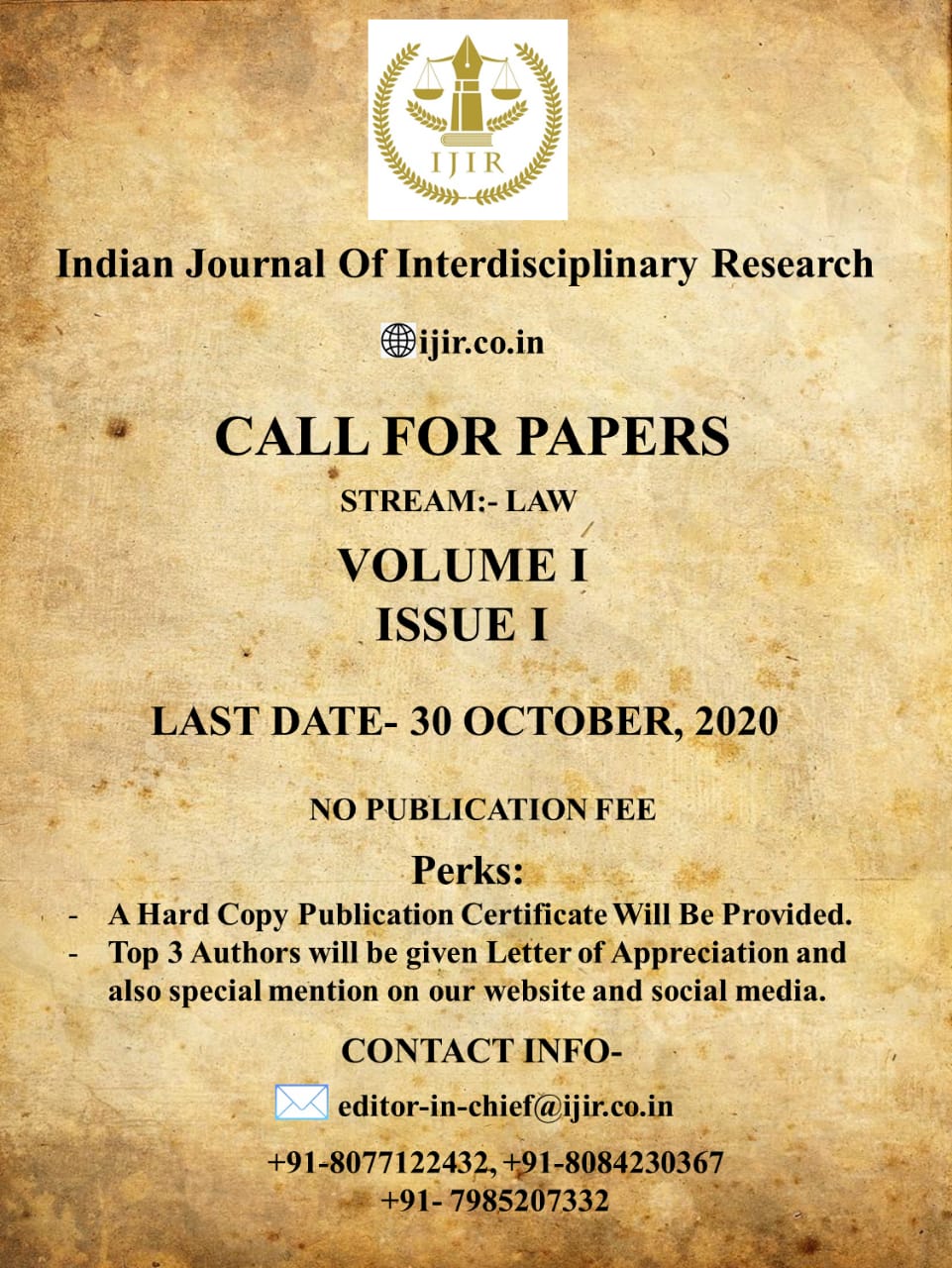 Call for Papers: International Journal of Legal Research [Volume 4, Issue 2]: Pay Rs.1500 for Publication; Submit by Jan 05