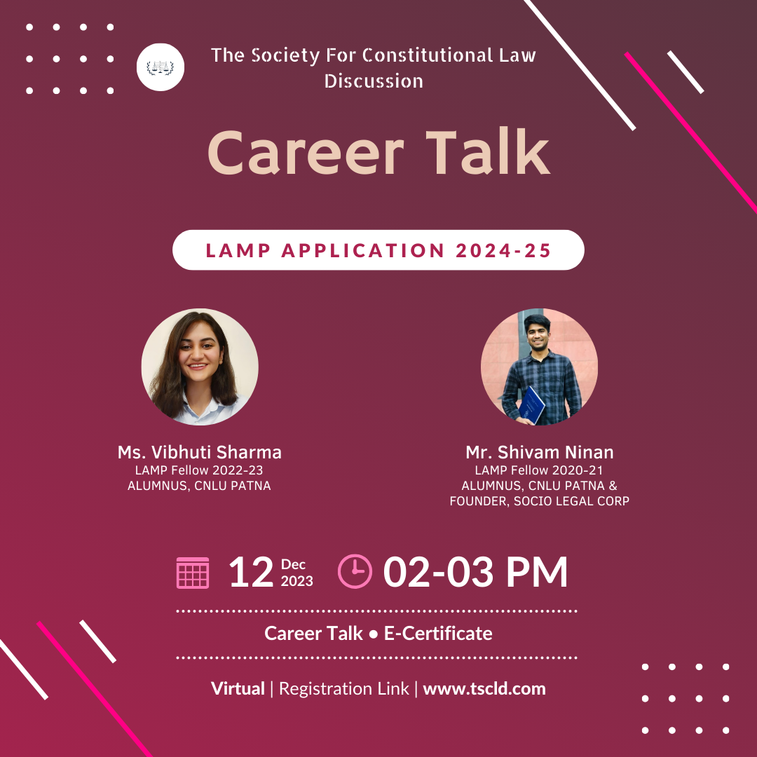 Career Talk On “Application For LAMP Fellowship” By The Society For Constitutional Law Discussion (TSCLD) [12th December 2023]: Register Now!