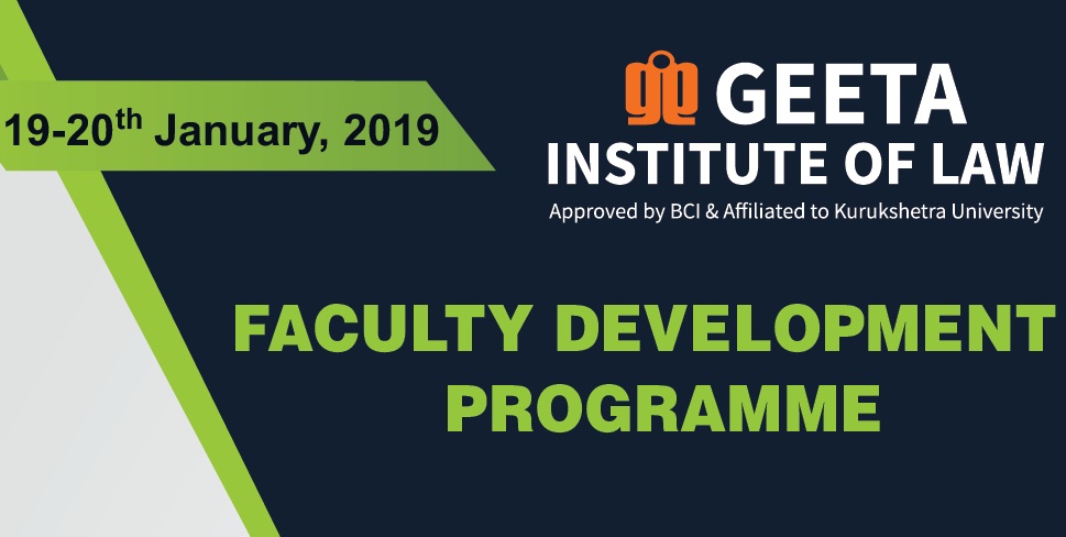 Faculty Development Programme (FDP) @ Centre for Research and Innovation of Geeta Institute of Law (GIL) on 19-20 Jan. 2019. Deadline for Registration: Jan. 14, 2019