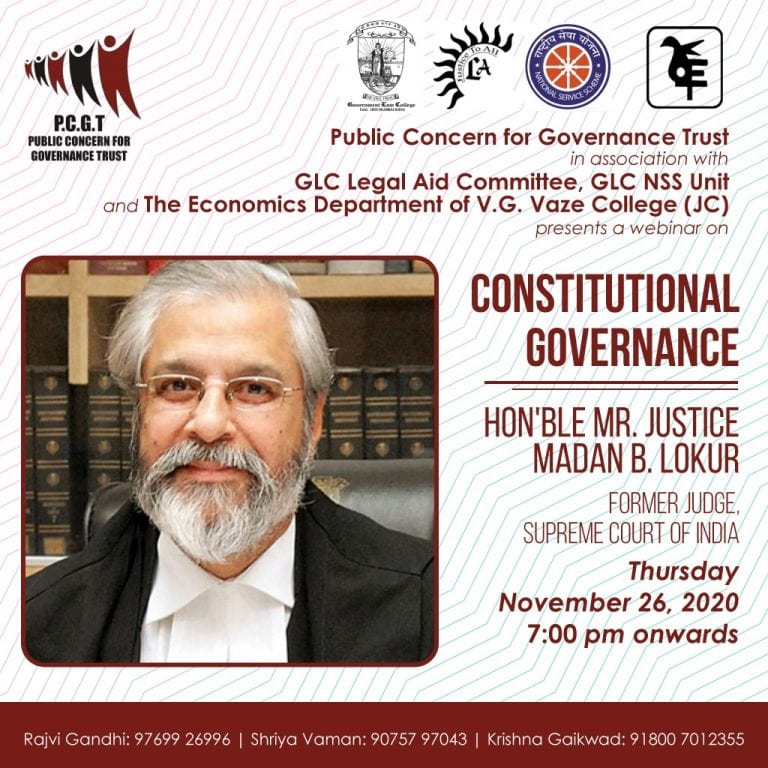Webinar on Constitutional Governance by PCGT, GLC Legal Aid Committee, NSS Unit & V.G. Vaze College: Nov 26, 7 PM