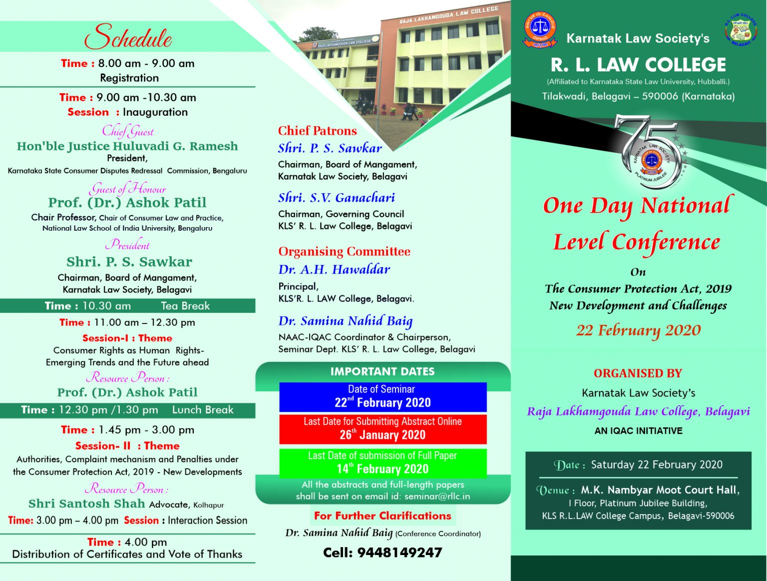 VENUE: M. K. Nambyar Moot Court Hall, Platinum Jubilee Building, KLS’ R. L. LAW COLLEGE CAMPUS, TILAKWADI, BELAGAVI- KARNATAKA