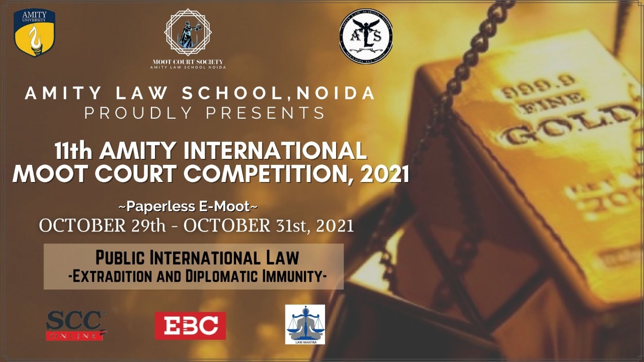 The Amity International Moot Competition, well known as AIM is a widely awaited affair by students all around the globe. The matter of discussion in the present year relates to Public International Law dealing with aspects of extradition, asylum and diplomatic immunities organised by the Moot Court Society, Amity Law School, Noida. The moot court will simulate proceedings before the International Court of Justice (ICJ). Bringing with itself an unmatchable mixture of passionate competitors, the event will spread through a brief period of three days. Previous years hold standing grounds concerning the success and dignity of the event. With numerous foreign participation, the event witnesses broader interpretation of International law, bringing in proposals to solve the most complex of prevailing issues. Hence, articulating the magnitude of arguments testified in the matches.