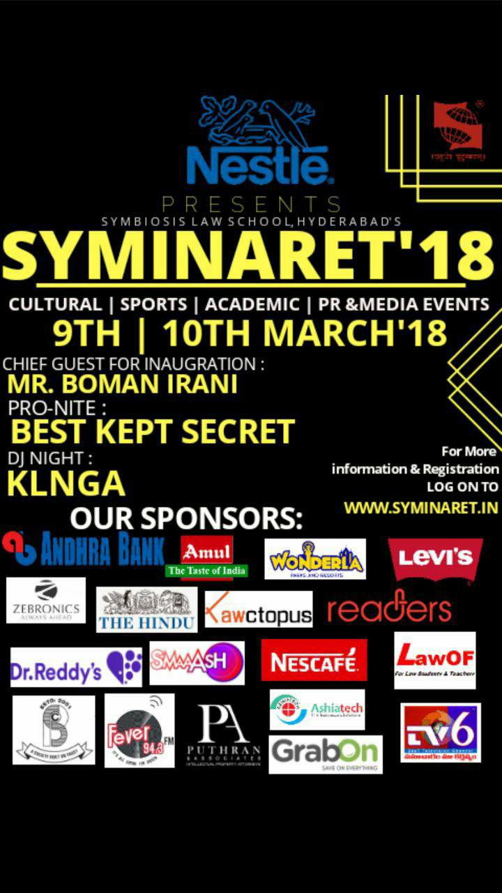 SYMINARET: 1st Edition of Symbiosis Law School, Hyderabad’s Annual Fest [March 9-10]: Registration Open
