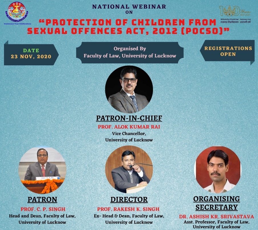 National Webinar on Protection of Children from Sexual Offences Act, 2012 by Lucknow University [Nov 23]: Registrations open