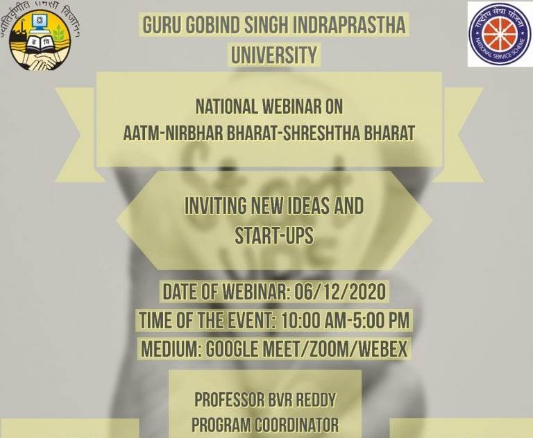 Webinar on Aatm Nirbhar Bharat-Shreshth Bharat by NSS & GGSIPU, Delhi [Dec 6, 10 AM-5 PM]: Submit by Nov 30