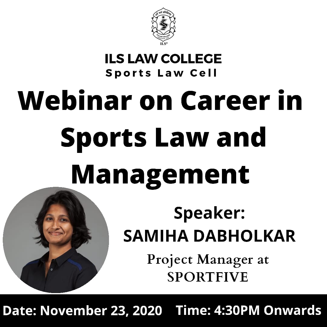Webinar Series on Career in Sports Law & Management by ILS Pune [Nov 23, 4:30-5:30 PM]: Registrations open