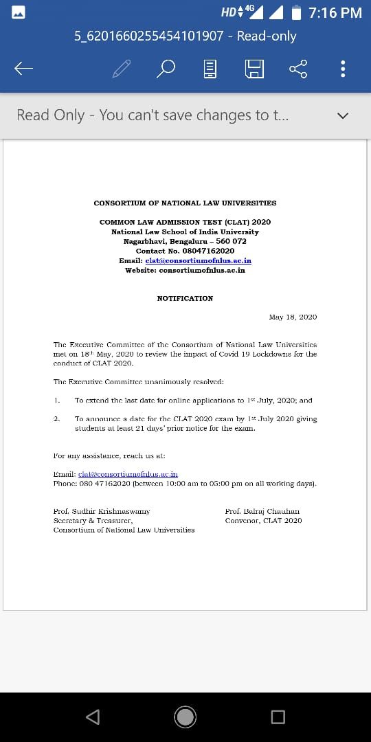 CLAT 2020 UPDATES: Exam Date of CLAT is Postponed : Now apply by July 1st