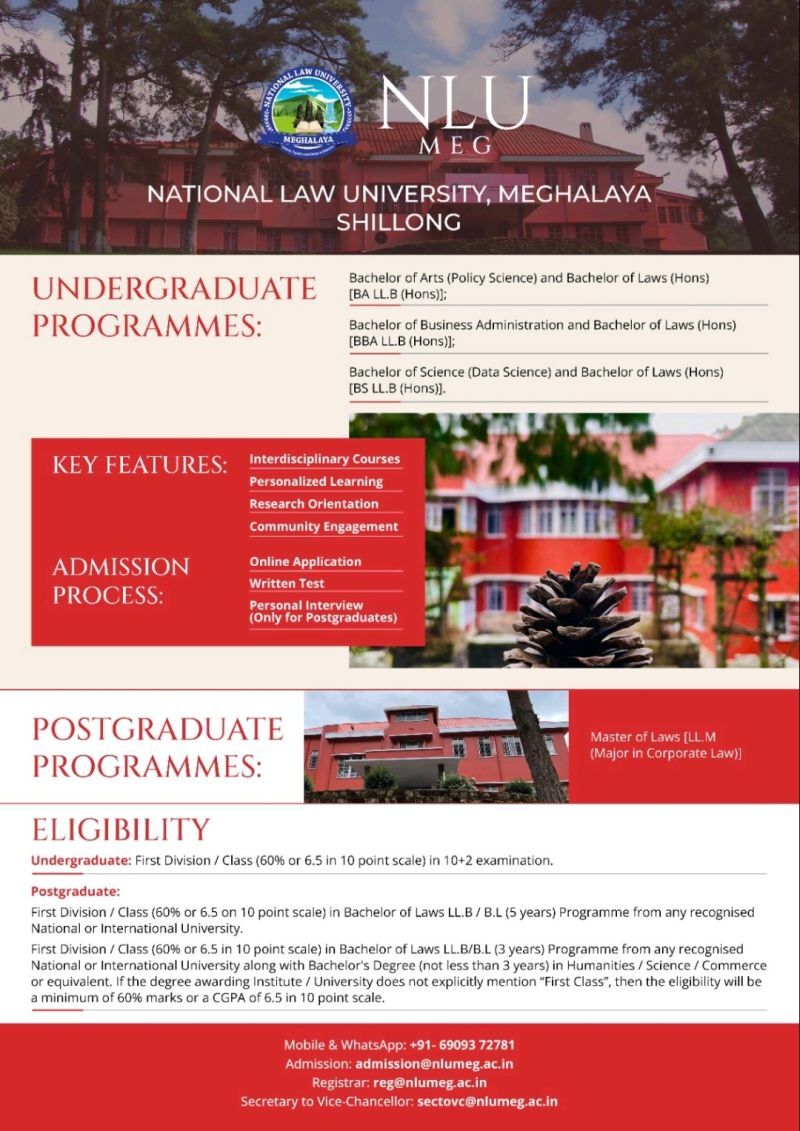 For any query contact at admission@nlumeg.ac.in or +91 364-2914005.