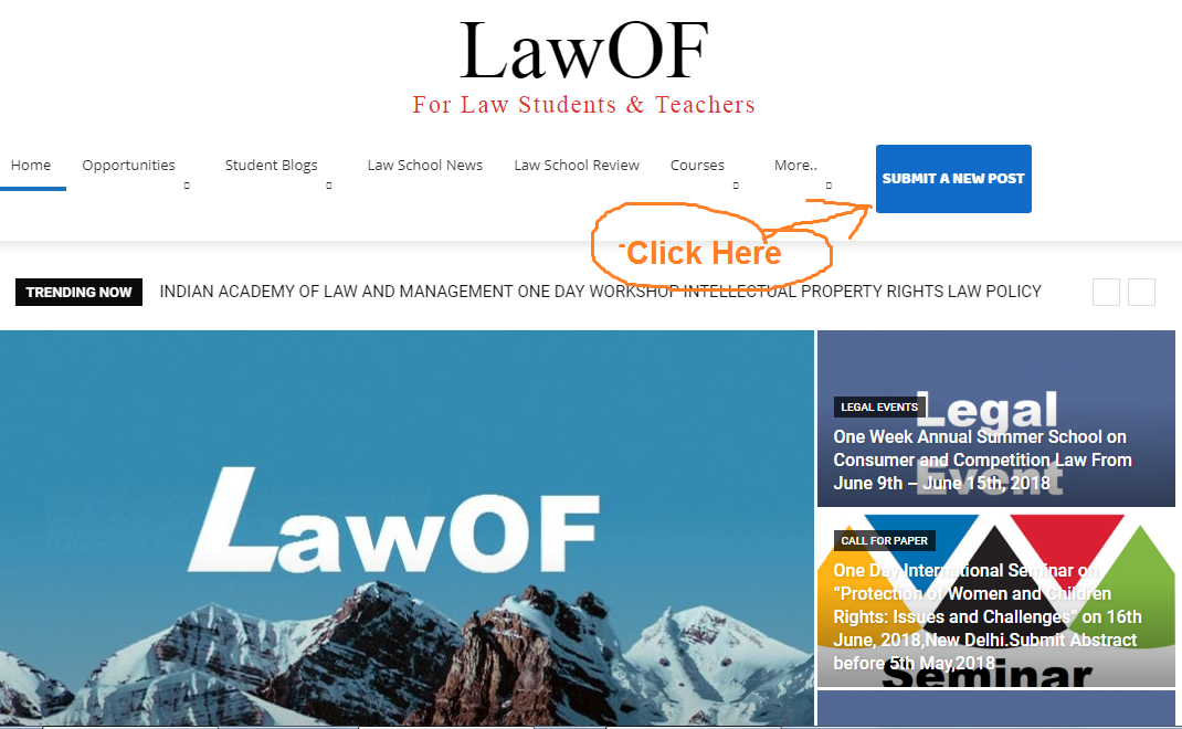 We’ve made it really easy for you to submit a new post on LawOF( Events/Law School Review/Internship Experience/Blog/News). Now anyone can directly submit the post for publication on LawOF.