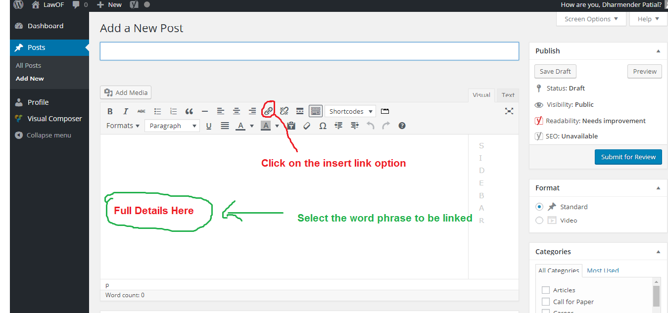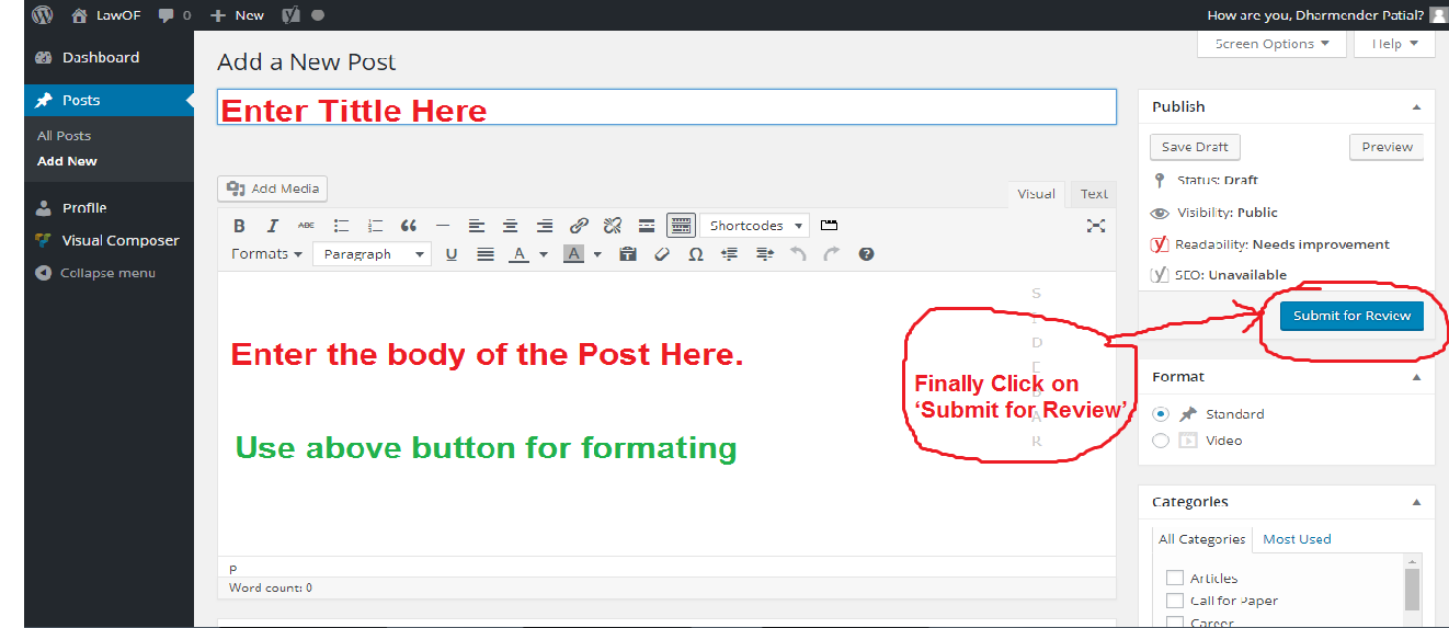 Click on the “SUBMIT A NEW POST” on the top of the LawOF