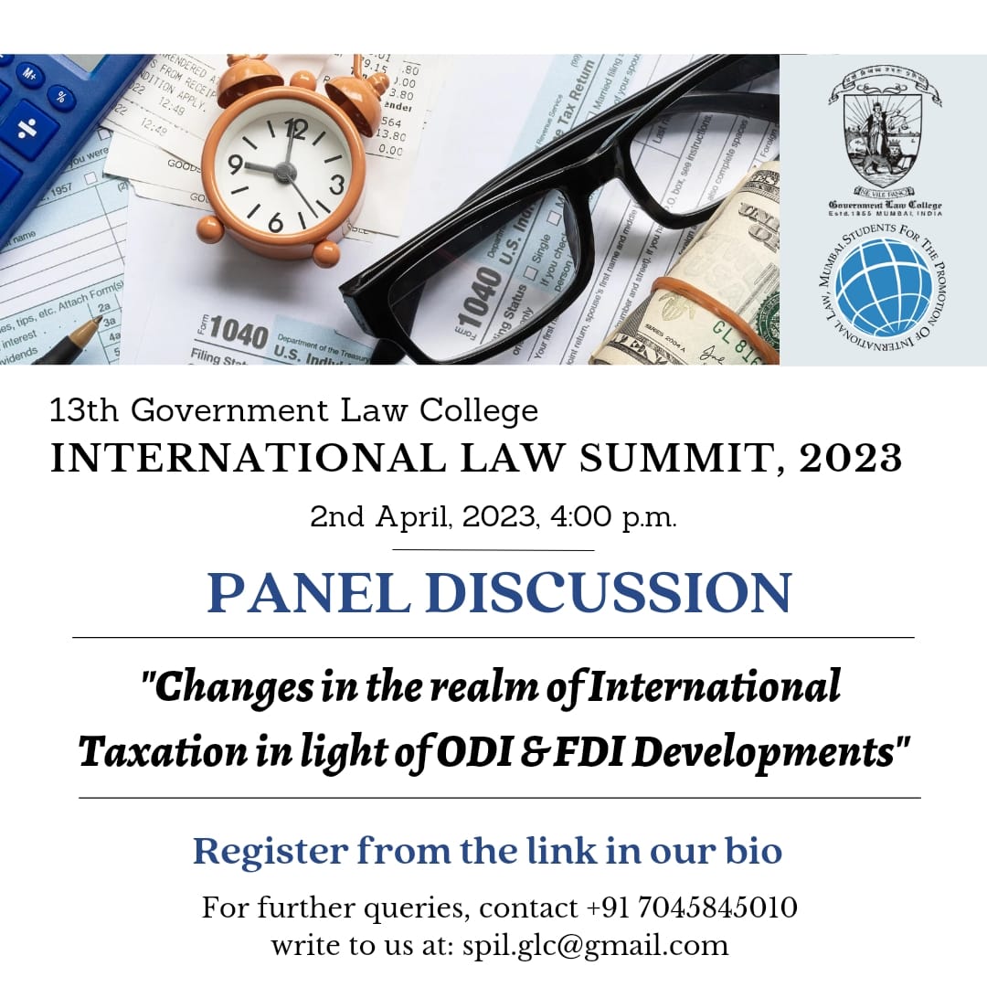 International Law Summit- Annual Panel Discussion, 2023 On “Changes In The Realm Of International Taxation In The Light Of ODI And FDI Developments” By SPIL, Government Law College, Mumbai [2nd April 2023]: Register Now!