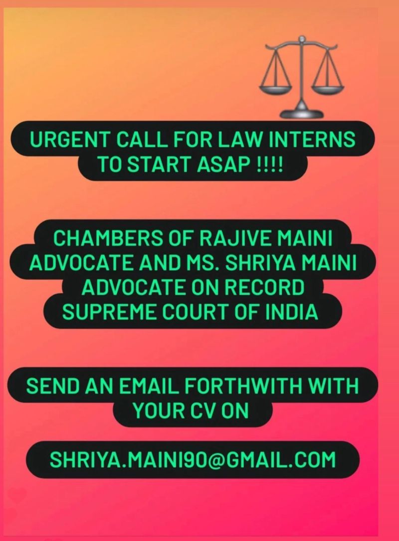 Law Internship Opportunity At The Chambers Of Rajive Maini Advocate And Ms. Shriya Maini Advocate On Record, Supreme Court Of India: Apply Now!
