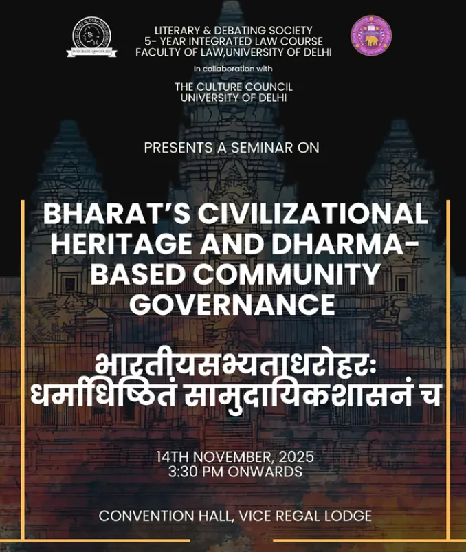 National Seminar on Bharat’s Civilizational Heritage and Dharma-based Community Governance by University of Delhi on 14th November 2025. Apply Now!