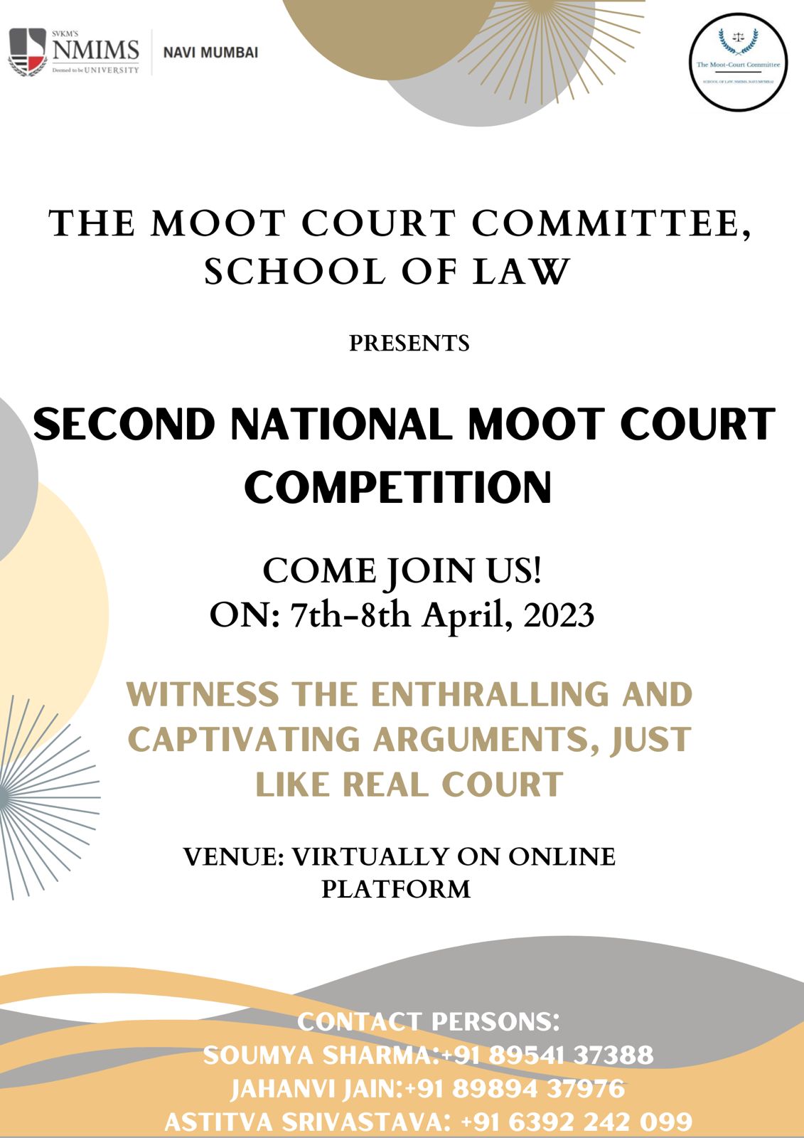 Second National Moot Court Competition, 2023 By SVKM’s NMIMS School Of Law, Navi Mumbai [23rd-24th April 2023 on Online Mode]: Register By 15th March 2023
