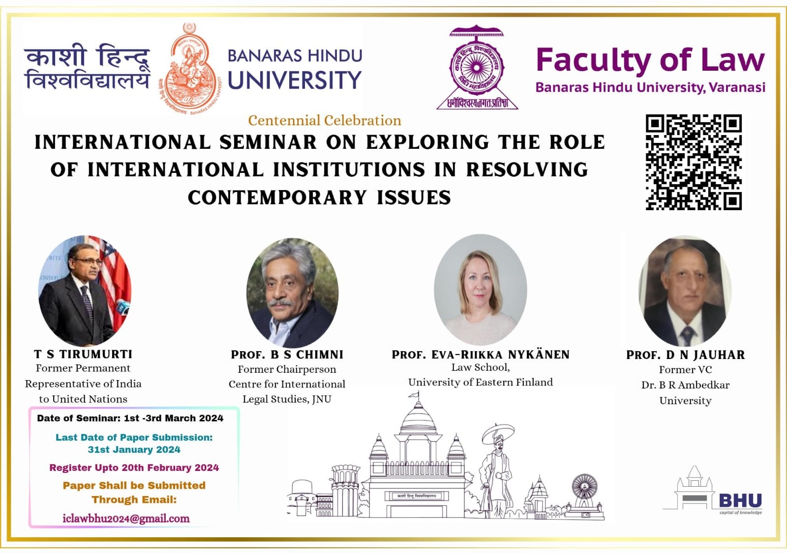 Three Days International Seminar On “Exploring The Role Of International Institutions In Resolving Contemporary Issues” By Faculty Of Law, Banaras Hindu University [1st-3rd March 2024]: Submit Paper By 18th February 2024 (Revised Date)
